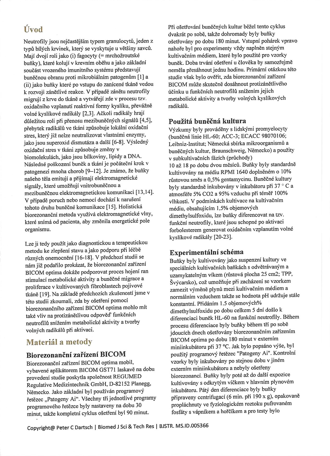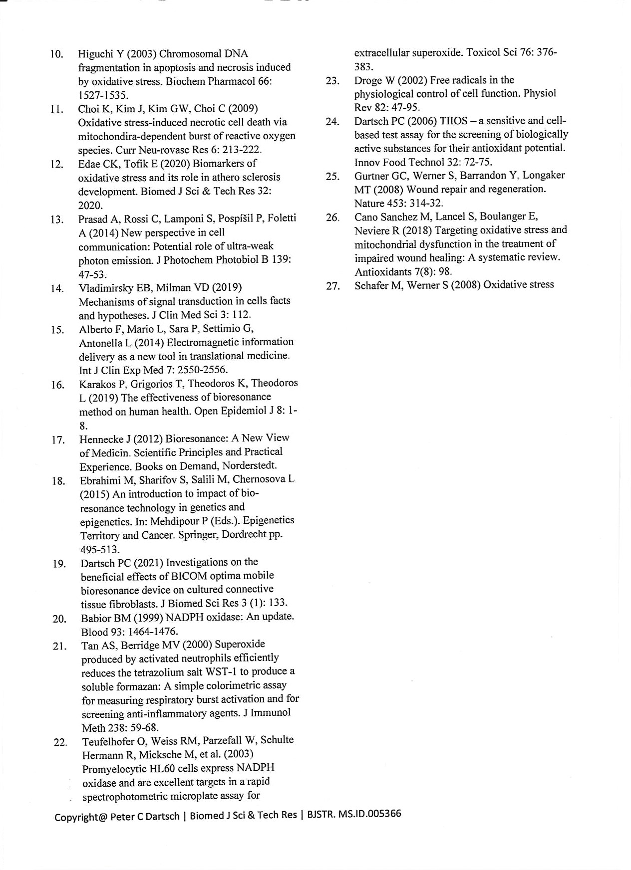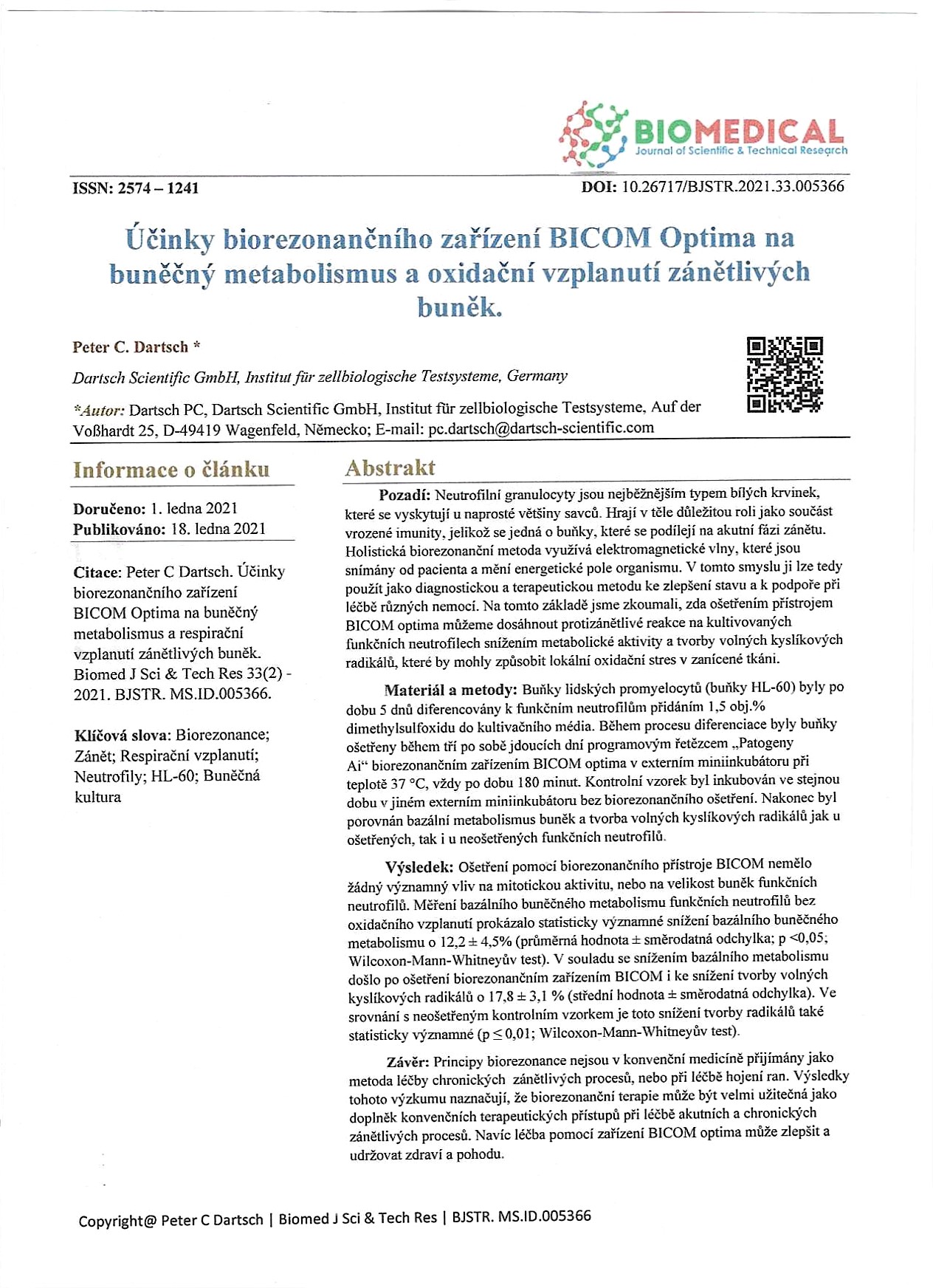 Článek publikovaný v časopise Journal of Scientific zkoumá vliv Biorezonance na buněčný metabolismus. Podle výzkumu byla prokázána schopnost Biorezonance zlepšovat metabolické procesy a podporovat tak efektivnější fungování buněk. Tento efekt je nezbytný pro celkovou zdravotní kondici a prevenci různých onemocnění.